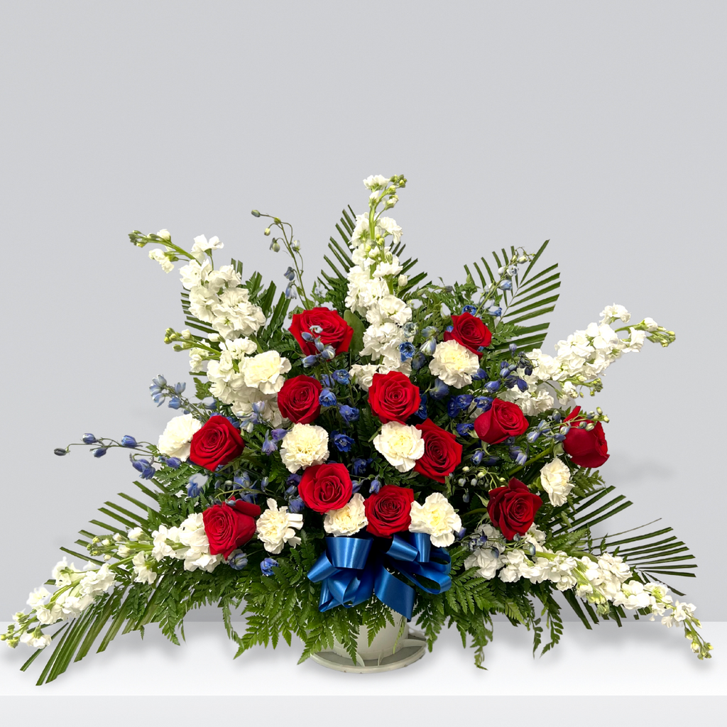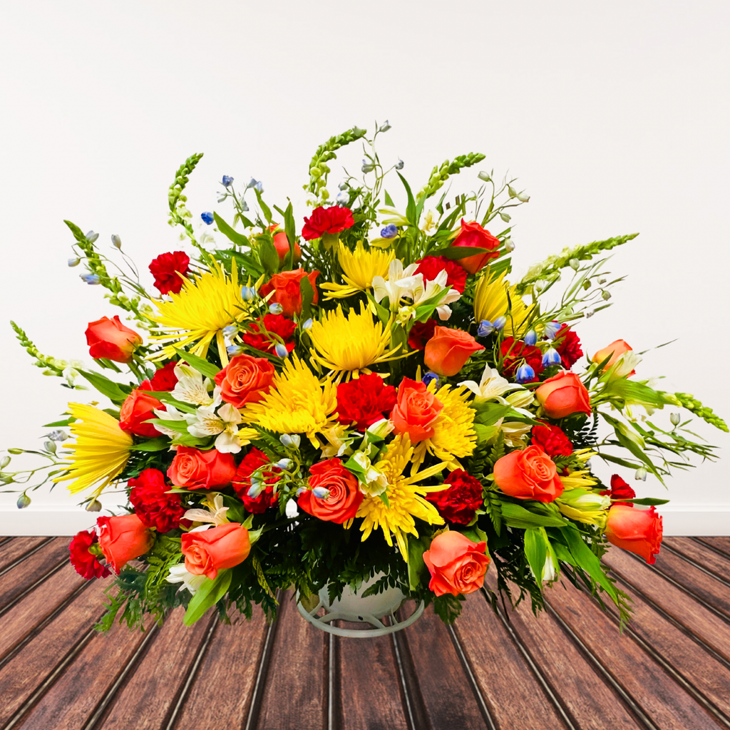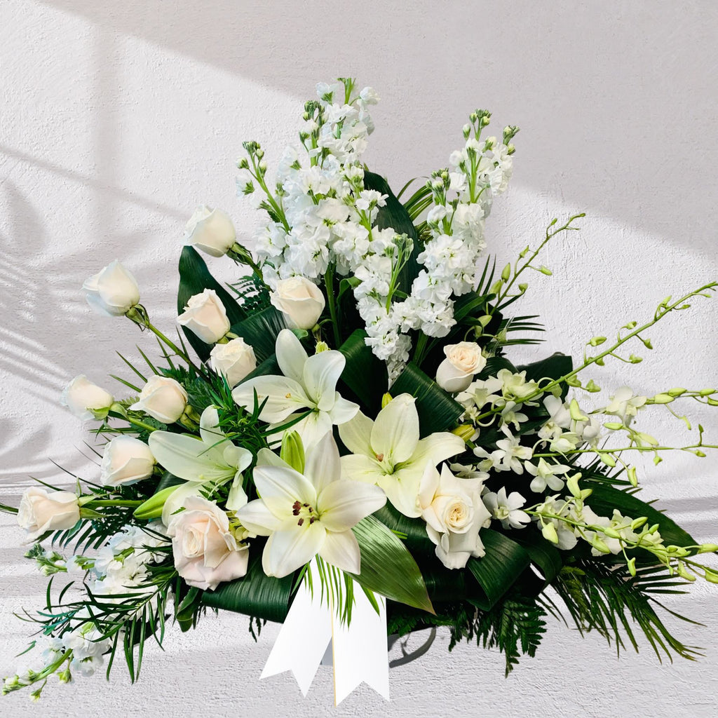 Sympathy or funeral basket arrangements can be designed in a variety of styles and sizes. Choose from a large Tribute Basket to smaller modern flower design, we can create custom Funeral Baskets for you or you might also choose from our collection. Add a custom printed ribbon or add a keepsake gift into the basket design to send a message of hope and love.