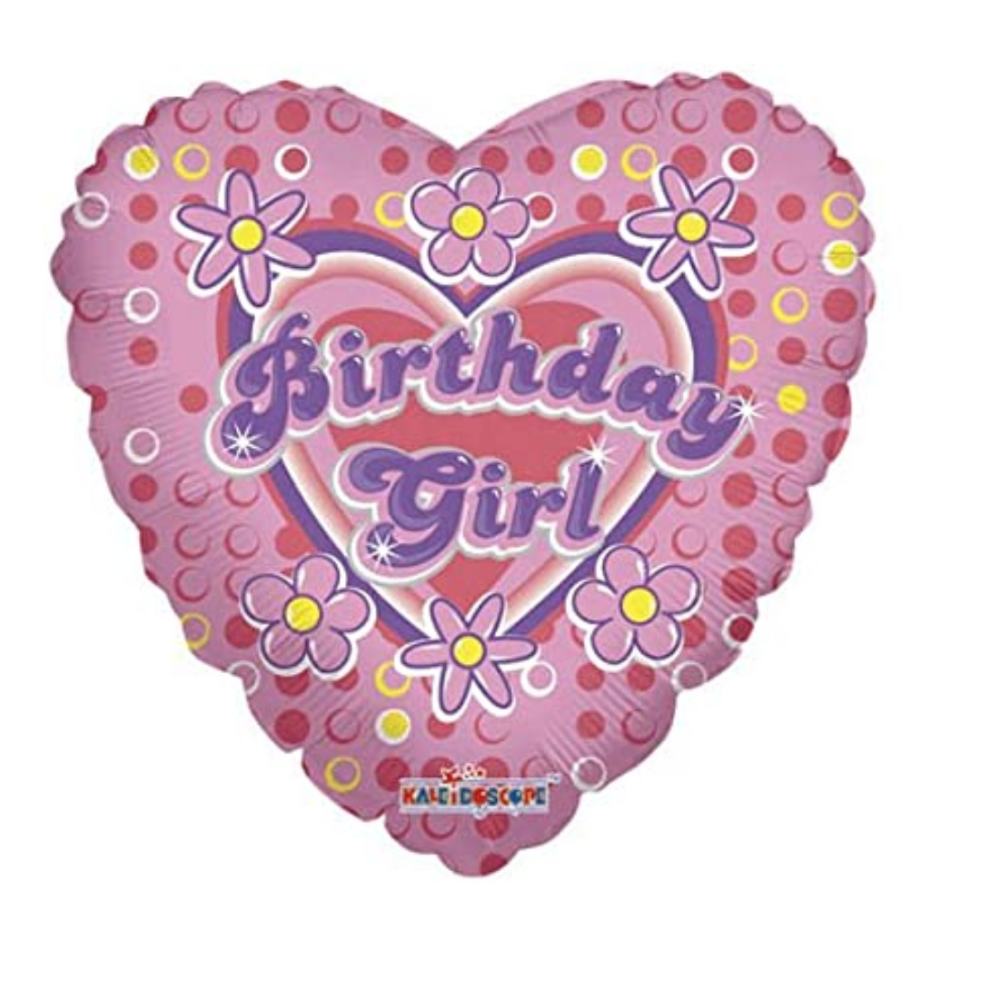 18" Birthday Girl Heart -Shaped Helium Mylar Balloon.