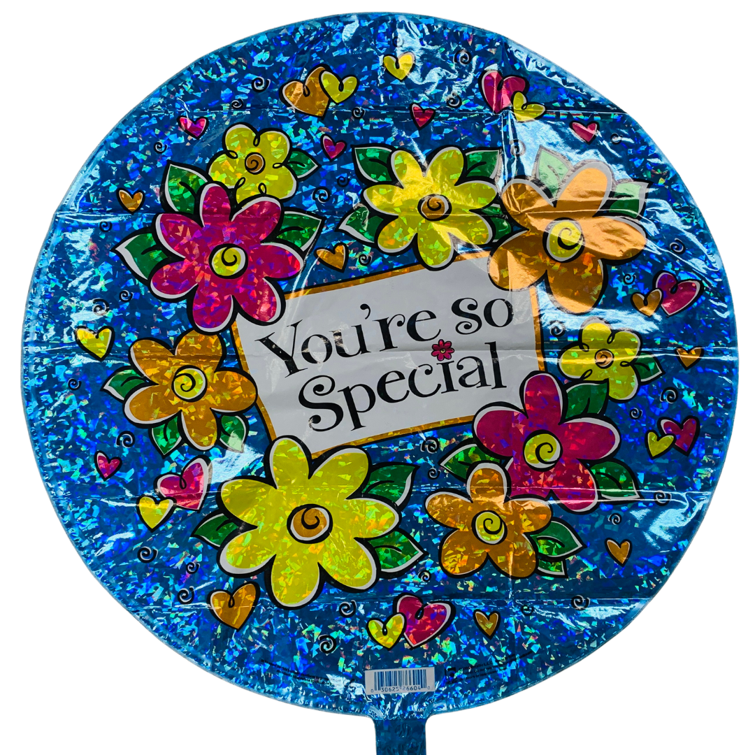 18" blue You’re so special Mylar Helium balloon with flowers and hearts.