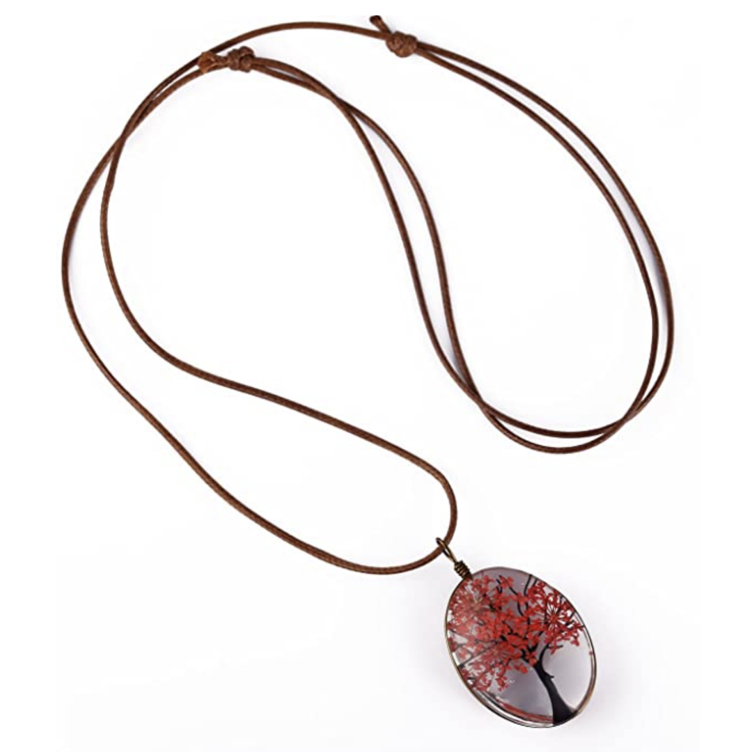 Dried flowers create a beautiful tree in this oval resin pendant and make the perfect gift.